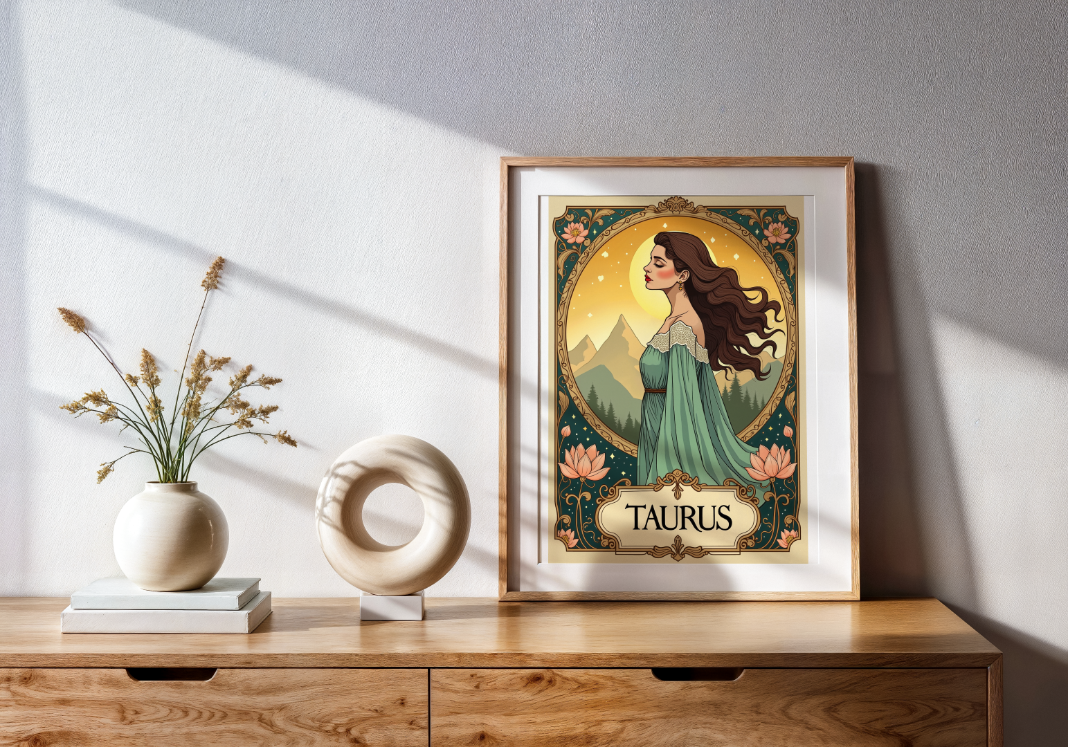 Bring the fiery energy of Taurus into your space with this elegant Art Nouveau-inspired illustration.